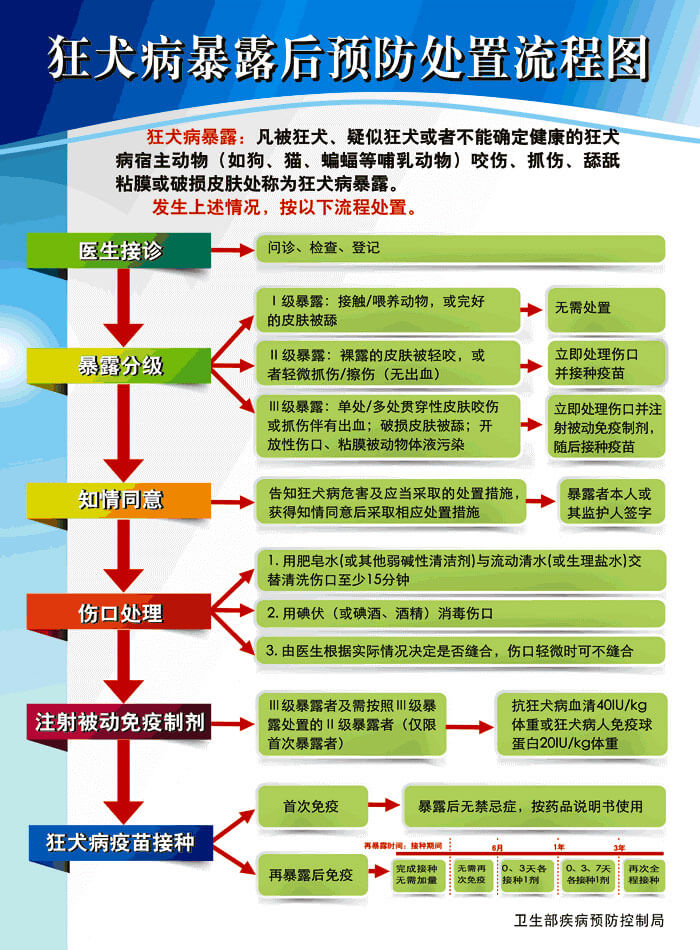 狂犬病暴露預防處置門(mén)診狂犬病暴露預防處置門(mén)診(俗稱:犬傷門(mén)診),一(yī)般設立在綜合醫(yī)院急診科(kē),或₩者在各地(dì)疾病預防控制(zhì)中心。規範的(de)犬傷門(mén)診可(kě)以完成傷口處理(lǐ)到(™dào)疫苗接種的(de)全部處置流程。