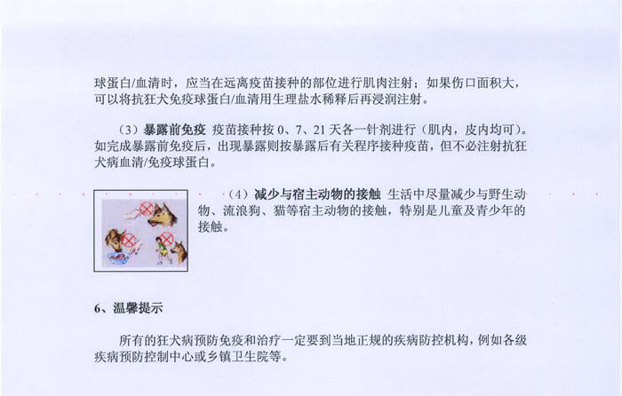 六、凡被犬咬緻傷者,應及時(shí)送醫(yī)院治療;并由醫(yī)院向當地(dì)衛生(shēng)防∞疫站(zhàn)申請(qǐng)狂犬病疫苗注射,防止狂犬病發生(shēng)。其他(tā)家(jiā)養哺乳動物(wù)被犬咬傷者,送獸醫(yī)站(zhàn≈)處理(lǐ)。野生(shēng)哺乳動物(wù)被犬咬傷者,要(yào)立即捕殺。