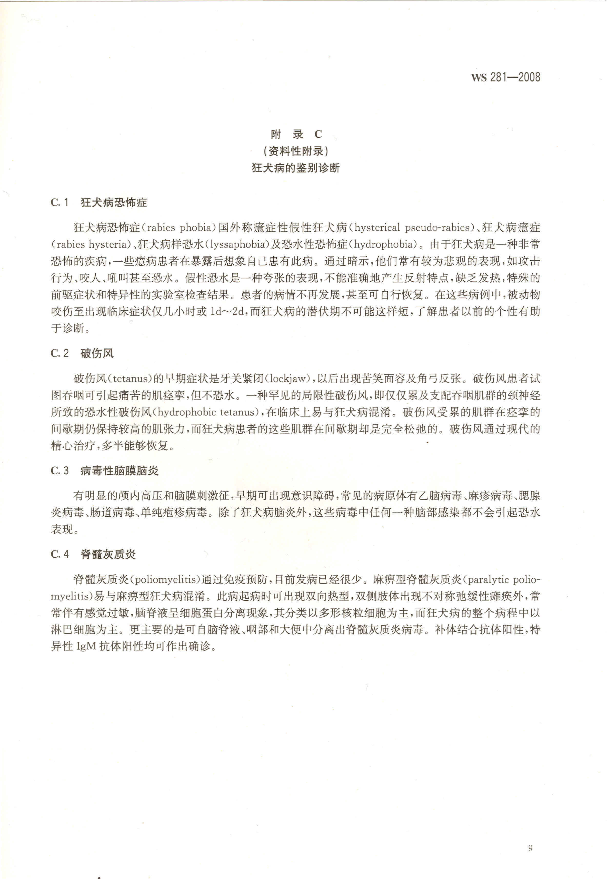 沒有(yǒu)典型的(de)怕水(shuǐ)、怕光(guāng)、怕風(fēng)和(hé)聲音(yīn)、大(dà)量流涎、痙攣等表現(xiàn);