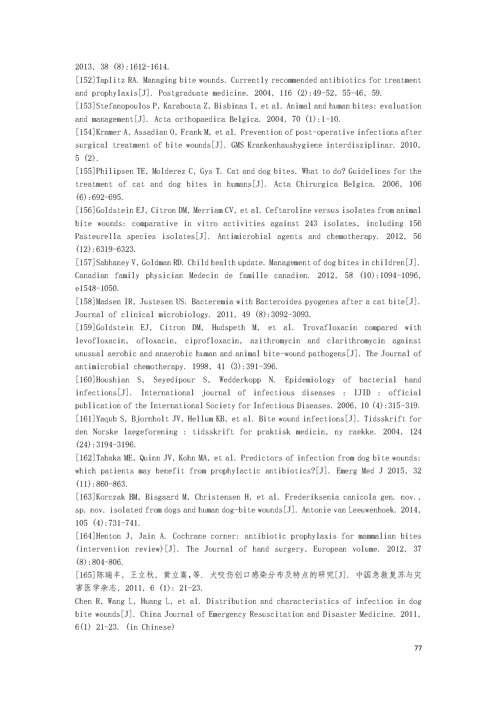 手指手掌手臂多(duō)處咬傷:15%-40%;